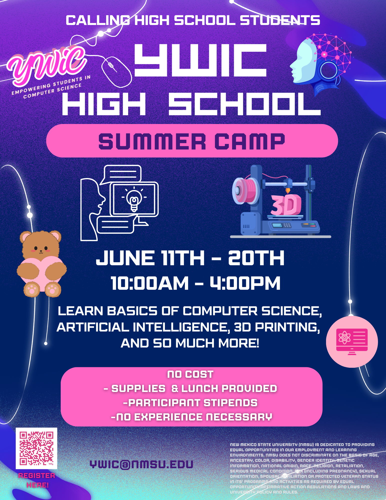 YWiC offers fun and engaging activities for students, emphasizing hands-on tasks and project-based learning. Our goal is to showcase the creativity of computing and inspire students to become creators of technology, not just users!